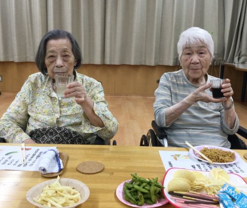 この時ばかりは職員も一緒に、飲んだり食べたりして楽しみます(*^^。